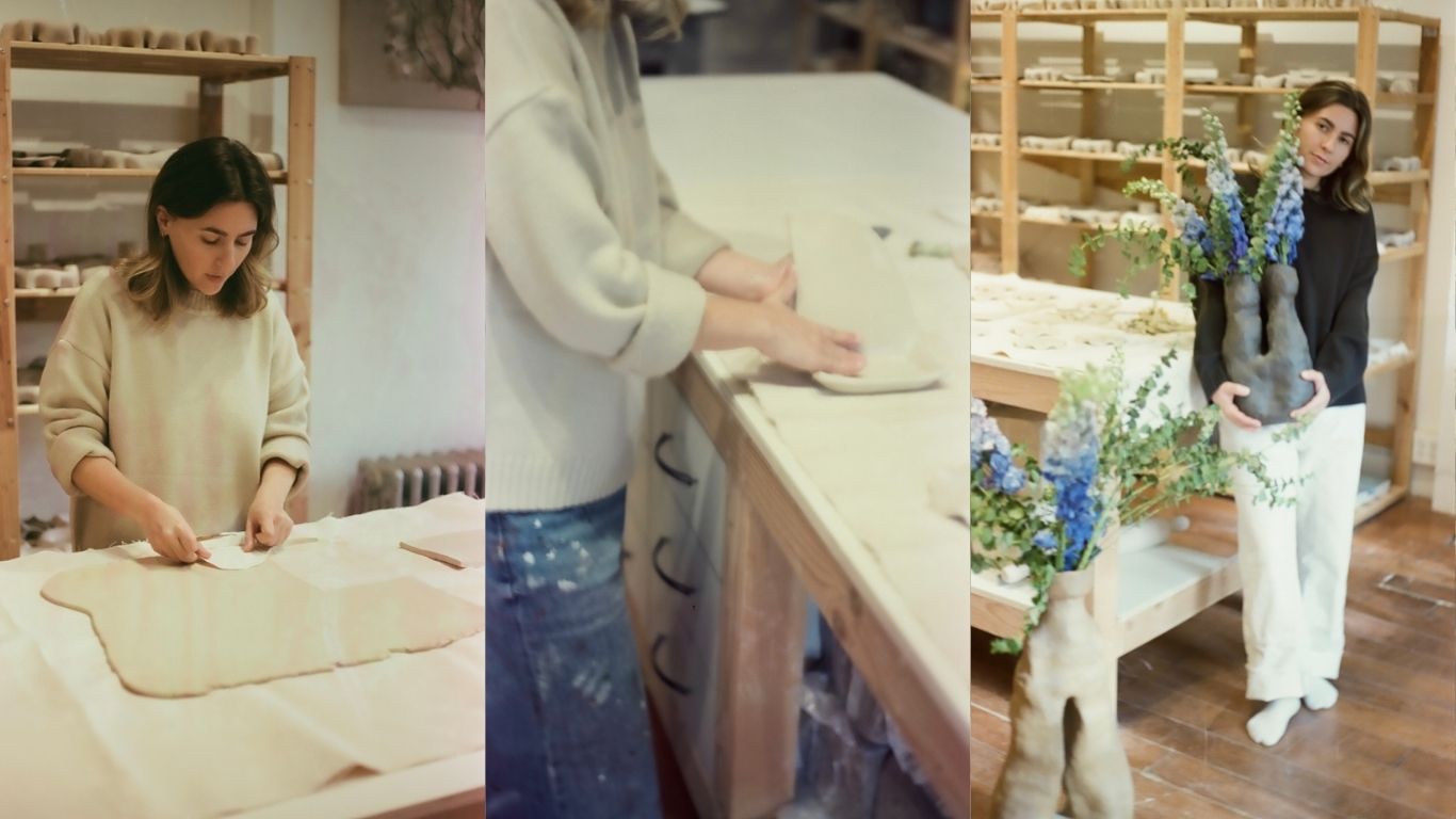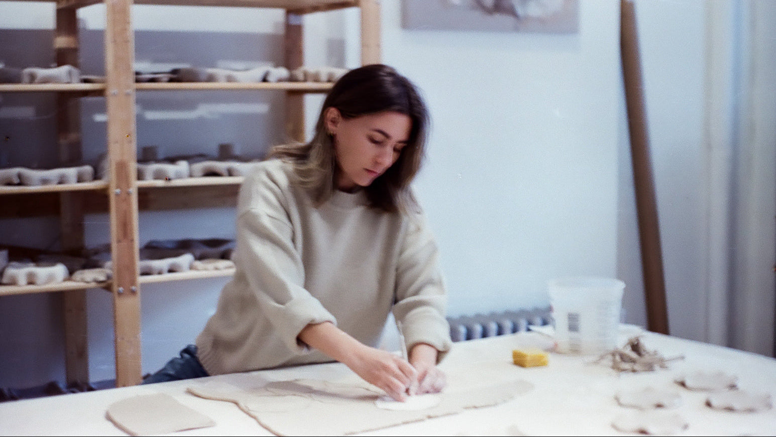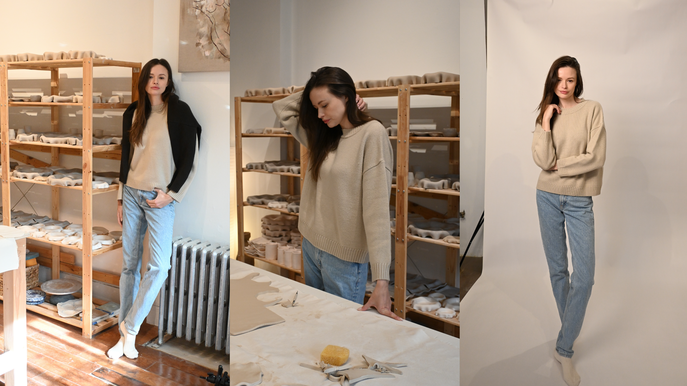 Our first-ever collaboration with Brooklyn ceramic artist Goobs brings together knitwear and clay-inspired color. Together, we created a wool and cashmere sweater that reflects the earthy palettes found throughout her work.
